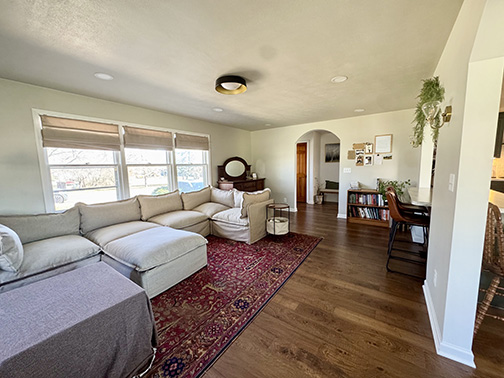 Emily wanted a space that was welcoming and inviting – a place where guests and children could all feel welcome. She has been very inspired by the concept of “Hygge” which is a Danish word meaning “cozy living,” and that is exactly what there hard work exudes. With the arched doorways and cozy textiles, it is a home that draws you in from the moment you step inside the door!